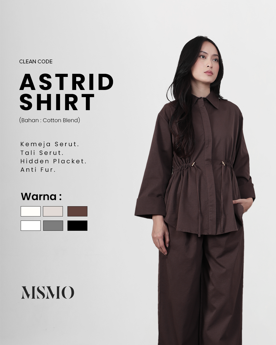 Kemeja Safari. Dengan tali serut. Bukaan kancing. Bekerah.Hidden Placket. Lengan panjang.