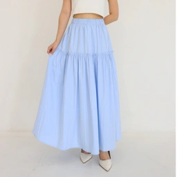 Maxi Skirt Detail ruffle membuat billie terlihat feminine, Bahan adem dan nyaman saat dipakai dan tidak nerawang, Bisa buat office look atau casual look.